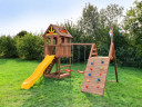Детям постарше безусловно понравится яркая двухволновая горка со скатом 2.7 метра. А для активных и подвижных в этой площадке предусмотрен устойчивый модуль с рукоходом