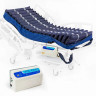 Малогабаритный электрокомпрессор размещается на полу или на боковой панели кровати. Регулировка задаваемого давления осуществляется в зависимости от массы пациента. Противопролежневый матрас обладает эффектом непрерывного массажа, предотвращает застои и не дает развиваться некрозу мягких тканей лежачего пациента.