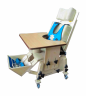 Опора для сидения с прямой спинкой анатомической формы до плеча помогает создать правильное, симметричное положение ребенка и удерживать равновесие в положении сидя, с помощью регулируемых по высоте ножек и подлокотников, тазобедренного крепления, в виде одиночного ремня, установленного под углом 45° и грудного регулируемого крепления «жилетик». Сидение имеет регулируемый съемный абдуктор. Опора снабжена столиком, который крепится на подлокотники. В комплект входит стол-парта, регулируемая по высоте и углу наклона столешницы. Мягкие элементы на поролоне, обтянуты искусственной кожей. Изделие окрашено мебельным лаком.