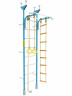 Сама стенка компактная: её высота составляет 231 см, а ширина всего 70 см. Расстояние от стены до стоек шведской стенки - 16 см. Расстояние между стойками диаметром 50 мм и толщиной 1,2 мм составляет 60,5 см, что является и шириной девяти перекладин диаметром 25 мм.
