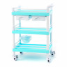 Стол манипуляционный с тремя полочками, сделанный целиком из белого пластика*, с трёхсторонними боковыми ограждениями на полках